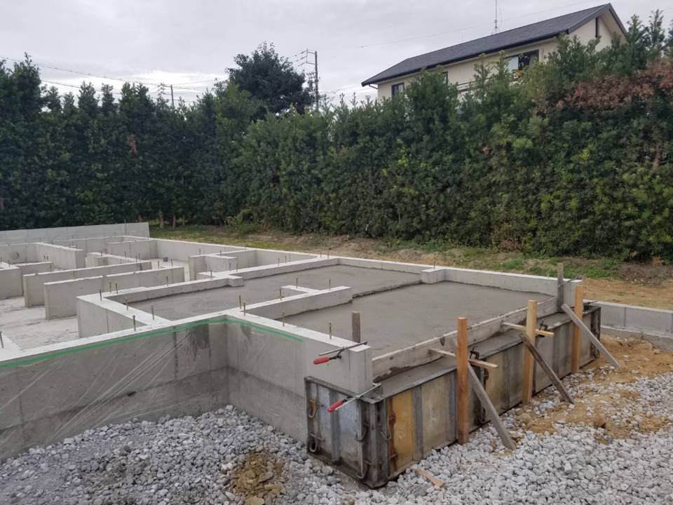 昨日はコンクリートの打設を行い、本日は内部の間仕切りの型枠の設置などを行いました。
