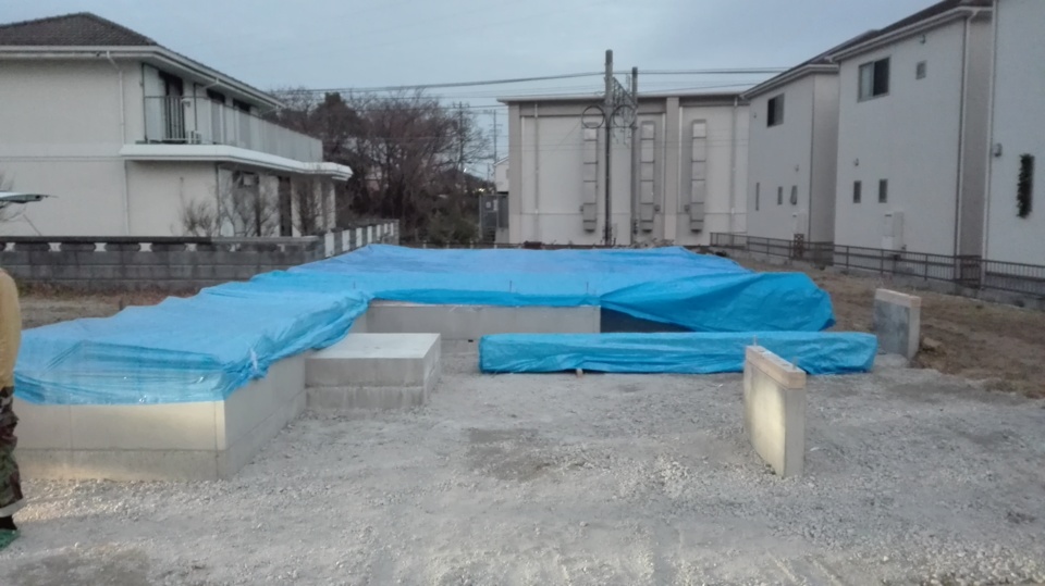 基礎工事の方は、捨コン前の防湿シートまで完了しています。