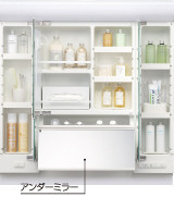 ![]() ■お化粧がたくさん収納できる四面鏡&専用トレイ。お父さんのひげ剃りにも便利 |